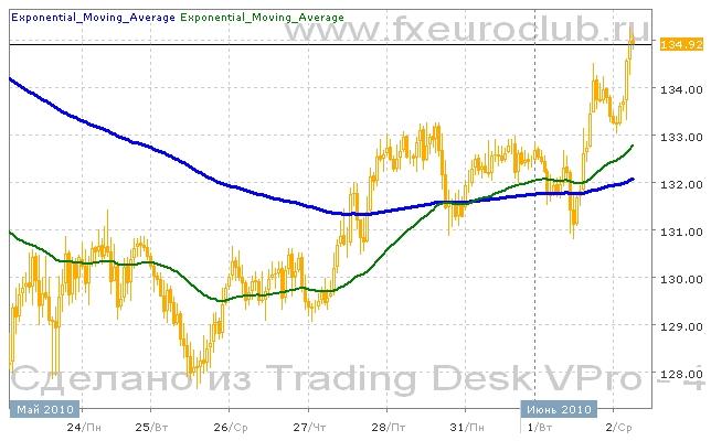 Валютная пара gbp/jpy прекратила свое снижение и постепенно разворачивается в сторону роста. После достижения минимума в районе 126,50 произошел отскок вверх, которй затем перерос в фигуру технического анализа "двойное дно". Данная фигура является разворотной, что и предопределило судьбу тренда. Пробив важный уровень в районе 131,30, котировки устремились вверх. Ближайшей целью повышения является район 140,00. Комбинация скользящих средних с периодами 55 и 200 сейчас находится в положении восходящего движения, поскольку быстрая линия пересекла снизу вверх медленную. И обе средние сейчас одновременно повышаются, поэтому не исключено, что рост может ускориться. В данных условиях повнижение котировок валютной пары gbp/jpy пока маловероятно.