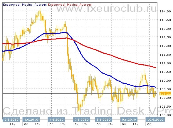 Валютная пара eur/jpy находится в состоянии бокового горизонтального движения в широком диапазоне с границами 108,00 - 114,00. Хотя поведение технических индикаторов в данный момент больше говорит о продолжении падающего тренда. Поскольку быстрая скользящая средняя с периодом 55 недавно пересекла сверху вниз медленную скользящую среднюю с периодом 200. Если цены смогут удержаться на текущих уровнях, а затем пробьют вверх уровень 110,50 то следующей целью повышения может стать уровень 114,00. В противном случае эту валютную пару ждет падние к новым минимальным уровням месяца.