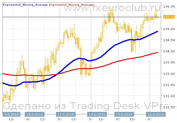 Валютная пара gbp/jpy продолжает свое повышение в рамках локального восходящего канала и в данный момент находится вблизи максимальных значений последнего месяца. Если максимальный уровень в районе 136,50 будет пробит, то целью повышения станет район 142,50 В противном случае котировки начнут понижаться и в итоге получится фигура технического анализа "двойная вершина" с целью падения в район 127,50. Технические индикаторы пока говорят о возможном продолжении повышения. Комбинация скользящих средних, в которой быстрая с периодом 55 находится выше медленной средней с периодом 200, говорит о силе восходящего тренда. Падение котировок в данных условиях маловероятно пока не пробит уровень 134,00.