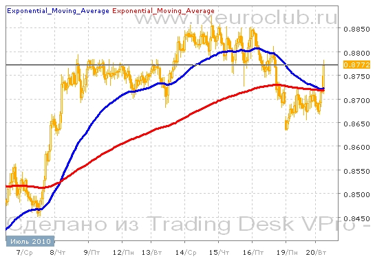 Валютная пара aud/usd к настоящему моменту находится недалеко от максимальных значений за последние недели. Серьезных коррекций к росту пока еще не было, но, скорее всего, этот рост будет продолжен. Недавно был подтвержден важный уровень поддержки в районе 0,8650. Цены попытались протестировать этот уровень с верхней стороны и он устоял. Поэтому сейчас дальнейшей целью движения может стать возврат в район 0,9000. Согласно расположению скользящих средних сейчас началась восходящая фаза движения котировок. Поскольку быстрая скользящая средняя с периодом 55 все еще находится выше медленной скользящей средней с периодом 200. Хотя обе средние сейчас почти сошлись в одной точке. Следовательно рост в этой ситуации более вероятен.