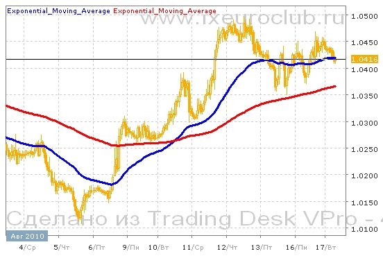 Валютная пара usd/cad последнее время демонстрировала постепенное повышение котировок. Движение вверх происходило не быстро, но уверенно. Локальные максимумы постоянно обновлялись. Сейчас котировки находятся в верхней торгового диапазона последнего месяца, отскочив немного от максимума в районе 1,0500. Если уровень сопротивления в районе 1,0500 не устоит, то следующей целью повышения станет район 1,0700. Для возобновления падения необходимо удержаться ниже уровня поддержки в районе 1,0350. Комбинация скользящих средних подтверждает сценарий повышения. Быстрая скользящая средняя с периодом 55 находится выше медленной с периодом 200, и обе средние сейчас повышаются. Поэтому в ближайшее время повышение котировок может продолжиться. Рассчитывать на падение в таких условиях нецелесообразно, пока не произойдет обратного пересечения скользящих средних.