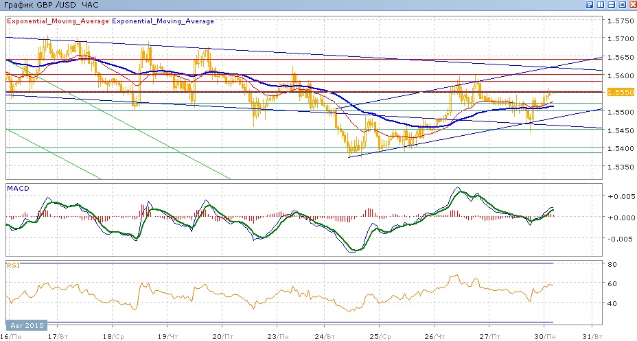 Уровни сопротивления: 1.5560, 1.5550, 1.5580.