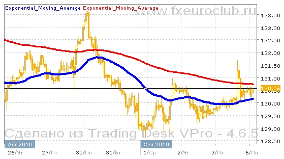 Валютная пара gbp/jpy продолжает колебаться на достигнутых ранее уровнях, хотя появляется все больше признаков прекращения нисходящего тренда. После достижения минимума в районе 128,80 цены отскочили вверх на уровень 133,60. Но дальнейшего движения вверх не последовало и котировки продолжили снижение. В данный момент цены консолидируются примерно в нижней части диапазона вблизи отметки 130,40. При этом продолжение тренда будет выяснено после выхода котировок за пределы сложившегося диапазона колебаний 133,50-128,80. Комбинация скользящих средних с периодами 55 и 200 сейчас находится в положении нисходящего тренда, поскольку быстрая линия находится все еще ниже медленной. И обе средние сейчас понижаются, поэтому не исключено, что понижение котировок может ускориться. Повышение котировок валютной пары gbp/jpy выглядит менее вероятным пока не пробит вверх уровень сопротивления в районе 133,50. В этом случае образуется фигура "двойное дно".
