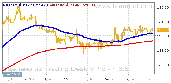 Валютная пара gbp/jpy стремительно отскочила от минимальных уровней месяца и сейчас появляется все больше признаков прекращения нисходящего тренда. После достижения минимума в районе 127,80 цены отскочили вверх на уровень 134,00. Но дальнейшего движения вверх не последовало и котировки сейчас закрепляются на достигнутых ранее уровнях. В данный момент цены консолидируются примерно в верхней части диапазона вблизи отметки 133,30. При этом продолжение тренда будет выяснено после выхода котировок за пределы сложившегося диапазона колебаний 132,00-134,00. Комбинация скользящих средних с периодами 55 и 200 сейчас находится в положении восходящего тренда, поскольку быстрая линия пересекла снизу вверх медленную. Но обе средние сейчас движутся горизонтально, поэтому не факт, что повышение котировок может ускориться. Понижение котировок валютной пары gbp/jpy выглядит менее вероятным пока не пробит вниз уровень поддержки в районе 132,00. В этом случае возможна небольшая коррекция вниз.