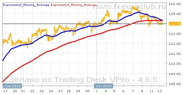 Валютная пара eur/jpy находится в состоянии плавного повышения. Сейчас котировки находятся в нижней части диапазона 115,60-113,60 и закрепились в районе 113,90. На часовых графиках образовался уровень поддержки в районе 113,60, от которого котировки уже два раза отталкивались вверх. Если в этот раз уровень будет пробит вниз, то падение может ускориться. К тому же на графиках образовалась классическая разворотная фигура технического анализа "голова-плечи" которая имеет своей целью падение котировок в район 111,50. При этом поведение технических индикаторов в данный момент больше говорит о начале нисходящего тренда. Поскольку быстрая скользящая средняя с периодом 55 находится выше медленной скользящей средней с периодом 200. Но уже спускается вниз и готовится пересечь вниз медленную среднюю. Если они пересекутся и быстрая будет ниже медленной средней, то вполне возможно начало новой волны падения с целью 111,50.