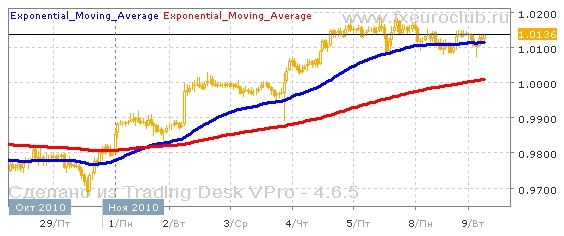 Валютная пара aud/usd к настоящему моменту находится в верхней части торгового диапазона за последние недели. Сейчас начинают формироваться предпосылки к продолжению восходящего тренда. В настоящее время продолжается тестирование уровня сопротивления в районе 1,0180. Если будет пробит вверх уровень сопротивления в районе 1,0180, то дальнейшей целью движения может стать рост в район 1,0300. К тому же, согласно расположению скользящих средних сейчас продолжается восходящая фаза движения котировок. Поскольку быстрая скользящая средняя с периодом 55 уже находится выше медленной с периодом 200. Для продолжения роста необходимо удержаться выше уровня 1,0100.