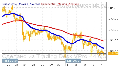 Валютная пара gbp/jpy сейчас демонстрирует нисходящую тенденцию. После достижения очередного максимума в районе 134,20 цены постепенно опустились до уровня 129,20. Пока дальнейшего движения вниз не последовало и котировки сейчас закрепляются на достигнутых ранее уровнях. В данный момент цены консолидируются примерно в нижней части диапазона вблизи отметки 129,50. При этом продолжение тренда будет выяснено после выхода котировок за пределы сложившегося диапазона колебаний 129,20-131,50. Комбинация скользящих средних с периодами 55 и 200 сейчас находится в положении нисходящего тренда, поскольку быстрая линия пересекла сверху вниз медленную. И обе средние сейчас движутся с понижением, поэтому есть уверенность что понижение котировок может продолжиться. Понижение котировок валютной пары gbp/jpy выглядит более вероятным пока действует уровень сопротивления в районе 131,00. В обратном случае возможно возвращение в район 133,00.