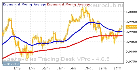 Валютная пара aud/usd в последнее время находится в восходящем канале в границах 0,9530-1,0020. Сейчас котировки находятся в верхней части диапазона на уровне 0,9920. Если удастся закрепиться выше уровня 0,9950, то следующей целью повышения будет уровень 1,0100. При этом поведение скользящих средних сейчас говорит в пользу повышения котировок. В настоящее время быстрая скользящая средняя находится над медленной, и обе сейчас движутся с повышением. Поэтому скорее всего продолжится восходящее движение в рамках восходящего тренда. Если не удастся пройти вверх уровень 0,9950, то возможен отскок вниз до уровня 0,9750.
