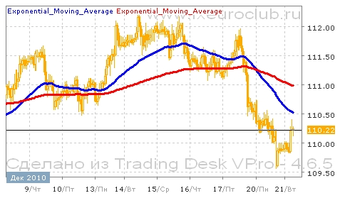 Валютная пара eur/jpy находится в состоянии нисходящего тренда. Сейчас котировки находятся в нижней части диапазона 109,50-112,20 и закрепились в районе 110,20. На часовых графиках образовался уровень поддержки в районе 109,50, от которого котировки уже отталкивались вверх. Если в этот раз уровень будет пробит вниз, то падение может ускориться. Но сейчас на графиках намечается небольшой отскок от минимального уровня. При этом поведение технических индикаторов в данный момент больше говорит о продолжении падающего тренда. Поскольку быстрая скользящая средняя с периодом 55 пересекла сверху вниз медленную скользящую среднюю с периодом 200. И обе сейчас движутся с понижением. Поэтому возможно начало нового импульса после выхода котировок за рамки существующего диапазона.