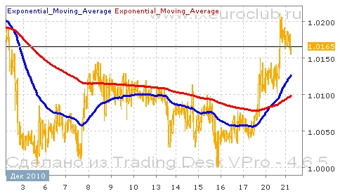 Валютная пара usd/cad последнее время демонстрирует развитие восходящей тенденции. Движение вниз завершилось отскоком от уровня 1,0000. Затем был пробит вверх уровень сопротивления в районе 1,0120. Сейчас котировки находятся в районе 1,0160. Комбинация скользящих средних пока подтверждает сценарий продолжения плавного повышения котировок. Быстрая скользящая средняя с периодом 55 пересекла снизу вверх медленную с периодом 200, и обе сейчас движутся с повышением. Поэтому движение в ближайшее время продолжится в сторону повышения с целью пробития уровня сопротивления в районе 1,0200.