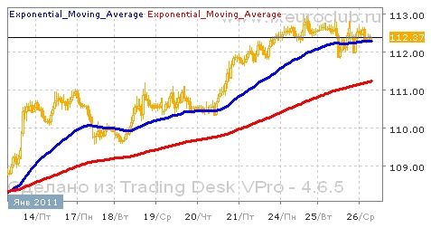 Валютная пара eur/jpy находится в состоянии продолжения восходящего тренда. Сейчас котировки находятся в верхней части диапазона 107,00-112,90 и закрепились в районе 112,30. На часовых графиках образовался уровень поддержки в районе 111,80, от которого котировки уже отталкивались вверх. Если в этот раз уровень будет пробит вниз, то падение может повториться. Но сейчас на графиках намечается небольшой отскок от максимального уровня. При этом поведение технических индикаторов в данный момент больше говорит о продолжении восходящего тренда. Поскольку быстрая скользящая средняя с периодом 55 пересекла снизу вверх медленную скользящую среднюю с периодом 200. И обе сейчас движутся с повышением. Поэтому возможно начало нового импульса после выхода котировок за рамки существующего диапазона.