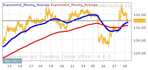 Валютная пара gbp/jpy сейчас демонстрирует продолжение восходящей тенденции. После достижения промежуточного минимума в районе 129,50 цены постепенно поднялись до уровня 132,60. Пока дальнейшего движения вверх не последовало и котировки сейчас немного корректируются вниз. В данный момент цены консолидируются примерно в верхней части диапазона вблизи отметки 131,30. При этом продолжение тренда будет выяснено после выхода котировок за пределы сложившегося диапазона колебаний 130,70-132,60. Комбинация скользящих средних с периодами 55 и 200 сейчас находится в положении восходящего тренда, поскольку быстрая линия пересекла снизу вверх медленную. И обе средние сейчас движутся с повышением, поэтому есть ещё уверенность что повышение котировок может продолжиться. Понижение котировок валютной пары gbp/jpy выглядит менее вероятным пока действует уровень поддержки в районе 130,70. В обратном случае возможно возвращение в район 129,00.
