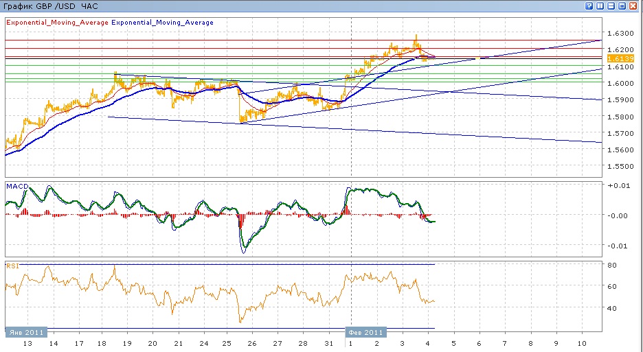 Уровни сопротивления: 1.6150, 1.6200 и 1.6250.