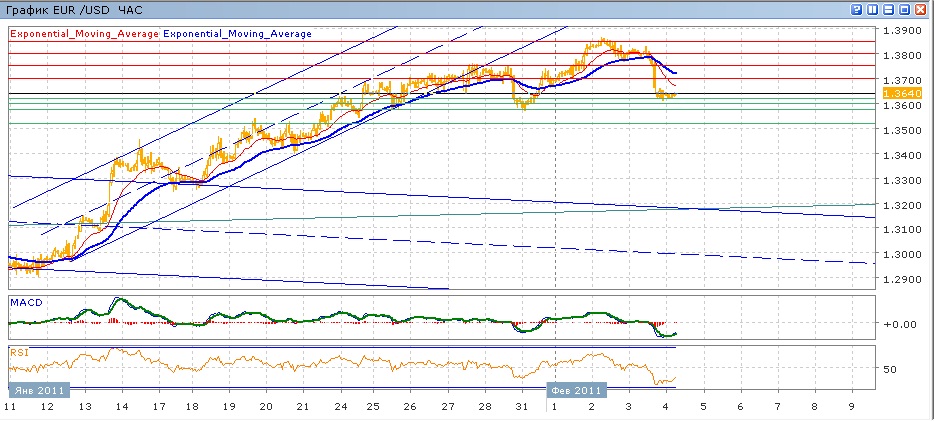 вырасти выше 2,5-месячного максимума паре не удалось — со среды она откатилась вниз от него, преодолев за два дня около 200 пунктов, получив поддержку на 1.3620. С начала сегодняшней торговли пара торгуется на уровне открытия, показывая отсутствие какой-либо динамики. Средние скользящие ЕМА21 и ЕМА55 пересеклись вниз и снижаются, индикаторы MACD и RSI вчера ушли под своим центральные линии и слабо растут. На сегодня цели вверх — 1.3700, далее 1.3750. Цели вниз на сегодня — 1.3620, далее 1.3600, 1.3575, 1.3520