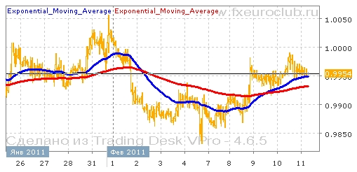Валютная пара usd/cad последнее время демонстрирует боковой горизонтальный канал. Движение вверх началось отскоком от уровня 0,9830. Затем был пробит вниз уровень сопротивления в районе 0,9900. Сейчас котировки находятся в районе 0,9950. Комбинация скользящих средних пока подтверждает сценарий начала плавного повышения котировок. Быстрая скользящая средняя с периодом 55 пересекла снизу вверх медленную с периодом 200, и обе сейчас движутся с повышением. Поэтому движение в ближайшее время продолжится в сторону повышения с целью пробития уровня сопротивления в районе 1,0000.
