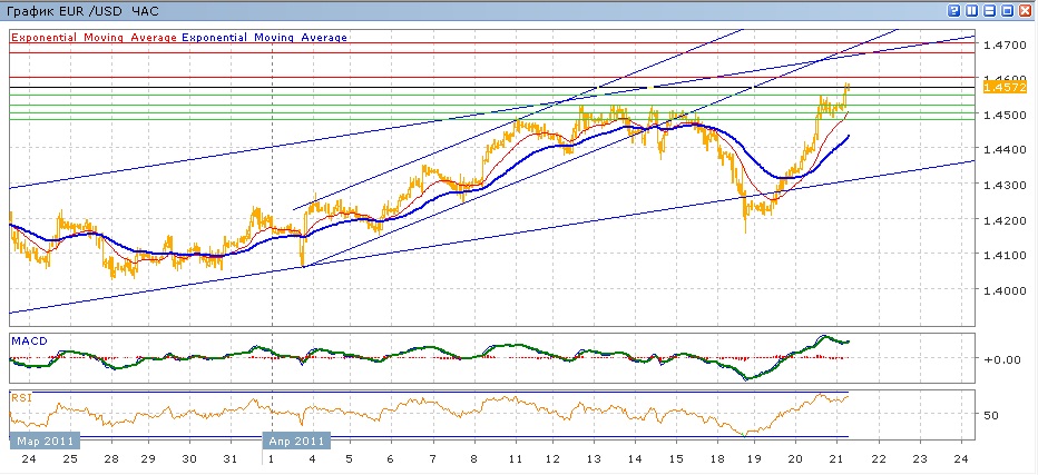 Уровни поддержки: 1.4550, 1.4520, 1.4500, 1.4480