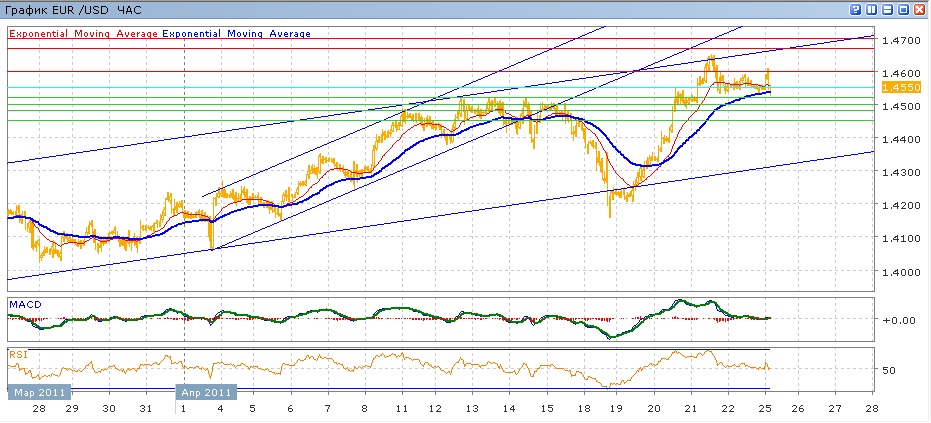 Уровни поддержки: 1.4550, 1.4520, 1.4500, 1.4480