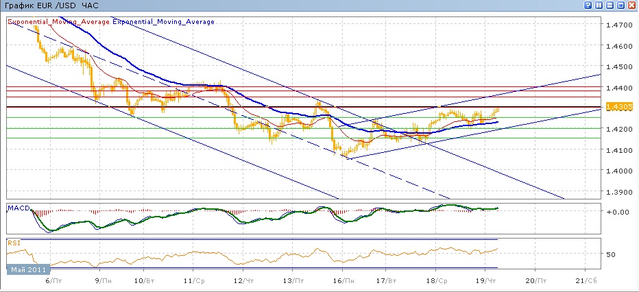 Уровни сопротивления: 1.4300, 1.4350, 1.4380, 1.4400