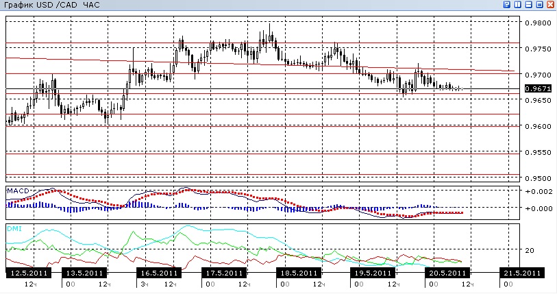 Пара продолжает находиться в зоне верхней границы нисходящего канала. Отсутствие роста привело к изменению технической картины на дневном графике: гистограмма MACD начала снижение, снижается ADX, хотя пока и линия MACD сохраняет положительный наклон, и DM+ выше DM-. Так что предпосылки к дальнейшему снижению имеются. На четырехчасовом графике пара снижается и линия MACD, а гистограмма уже находится в отрицательной зоне. ADX в этом масштабе снижается, а линии DM+ и DM- сближаются, что иллюстрирует выдыхающийся рост. На часовом графике ситуация более характерна для флэта: пара остаётся на тех же уровнях, что и днем ранее, линия MACD почти горизонтальна и гистограмма MACD колеблется около нуля. ADX на низком уровне, DM+ и DM- близкго друг другу. В отсутствии явной тенденции предпочтительным видится дальнейшее возвращение в канал.
