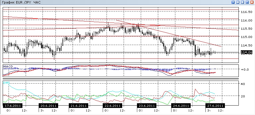 Снизившись, пара, тем не менее, нашла поддержку при приближении к уровню 113,67. На данный момент она находится недалеко от него, не пытаясь продвигаться дальше вниз. Попыток роста тоже не видно. ADX на дневном графике показывает на снижение, но слабое. Гистограмма и линия MACD скорее характерны для флэта. На четырехчасовом графике ADX показывает достаточно выраженное снижение, однако наклон вниз линии MACD слабый, а минимумы гистограммы MACD с минимумами пары образовали небольшое бычье расхождение. На часовом графике картина такая же, но ADX слабее показывает на снижение. Направление вниз кажется предпочтительным из-за сохранения общей картины. Уровень поддержки 113,67 представляется сильным, не исключено что многократно оказавший поддержку паре ранее, он окажет ей поддержку и сейчас.