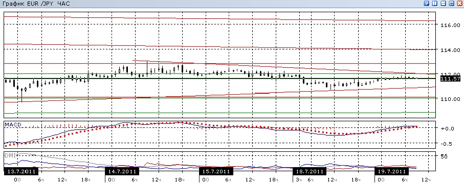 На четырехчасовом и часовом пара уменьшает амплитуду колебаний, уровнем притяжения выступает зона около 111,50. Противоречие индикаторов друг другу сохраняется, MACD указывает на небольшой рост, а ADX — на небольшое снижение. В часовом масштабе можно говорить о флэте.