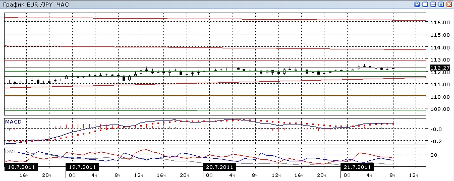 На четырехчасовом и часовом пара медленно растёт, хотя рост этот весьма небольшой, по ADX слабый. К тому же на часовом графике образовало медвежье расхождение между максимумами гистограммы MACD и максимумами цены, которое может реализоваться.
