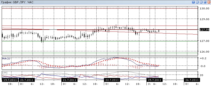 На четырехчасовом и часовом графиках флэт продолжается, пара не растёт и не снижается, центром притяжения служит уровень 128,00. Предпочтительным кажется продолжение снижения, под действием долгосрочного тренда.