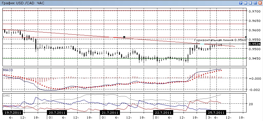 На часовом графике пара пока не может преодолеть уровень нисходящего тренда, что выразилось в снижении гистограммы MACD. Вместе с тем, рост в часовом масштабе кажется предпочтительным так как по ADX он довольно сильный, а линия MACD продолжает рост.