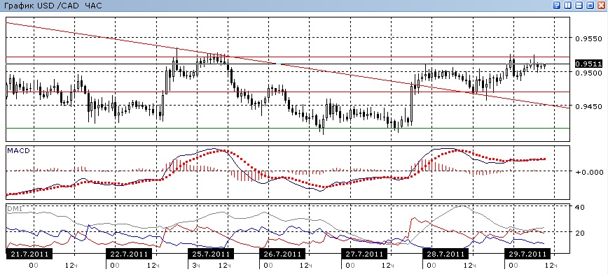 На часовом графике в пользу роста — ADX, по MACD тенденция к росту очень слабая.