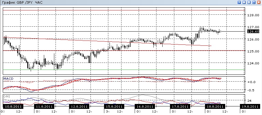 На дневном графике, судя по индикаторам направленного движения, возможно начало роста: гистограмма MACD хоть медленно, но начала рост, линия MACD имеет положительный наклон, DM+ пересек снизу вверх DM-. Однако форма вчерашней свечи настраивает на внимание: «дожи» может быть завершением недавно начавшегося движения.