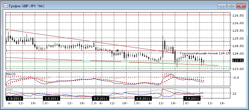 На четырехчасовом графике видно, что преодоление уровня 123,40 пока не получается, а индикаторы направленного движения показывают, что положение уже можно расценивать как флэт.