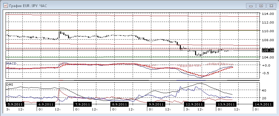 В часовом масштабе наблюдается остановка на уровне около 105,40.
