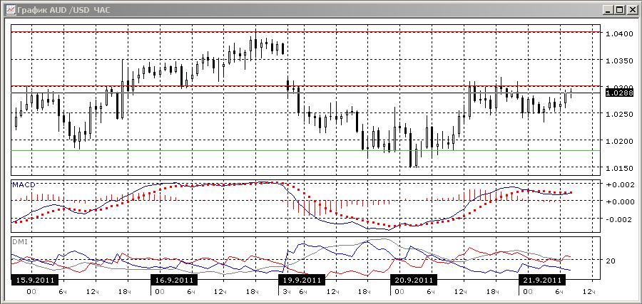 На дневном графике двойственность вариантов возвращается: или рост с целью около 1,0800, или снижение в район 1,0000. Хотя гистограмма MACD начала рост как первый признак возможного разворота, линия MACD и ADX с сильным превышением DM- над DM+ пока являются доводами в пользу большей вероятности дальнейшего снижения.