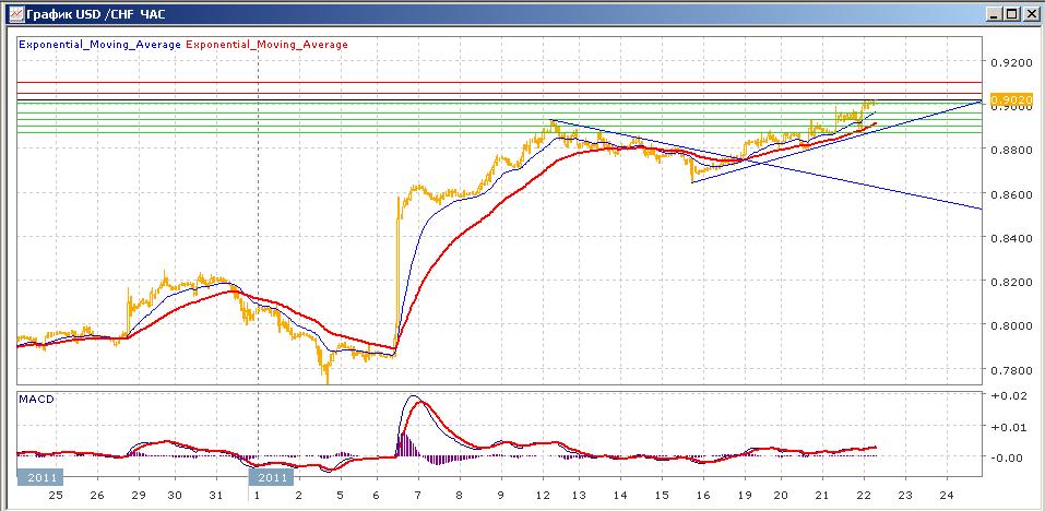 после показанного на прошлой неделе минимума ниже 0.8700 пара начала восстанавливаться, в понедельник она преодолела отметку 0.8800 и продолжила свой рост, добравшись к сегодняшнему утру до уровня 0.9000, выше которого сегодня и пытается закрепиться. Средние скользящие ЕМА21 и ЕМА55 пересеклись в начале недели пересеклись вверх и растут, индикаторы MACD и RSI также с начала этой недели находятся выше своих центральных линий и сегодня слабо растут. На сегодня целями вверх станет отрыва от 0.9000 и рост к 0.9500 и далее к 0.9100. Движение вниз направлено на 0.9000, 0.8960, 0.8930.