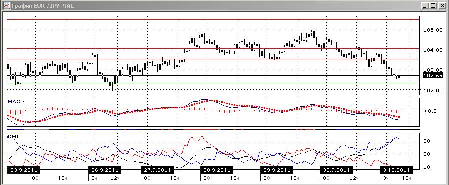 На четырехчасовом и часовом графиках пара продолжается снижение. Это по графику и подтверждается увеличением отрицательного наклона линии MACD, снижением гистограммы MACD и ростом ADX при увеличении разрыва между DM- и DM+. Предпочтительным направлением остается снижение.