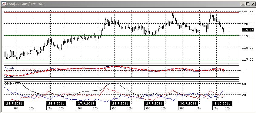 На четырехчасовом и часовом графика продолжается движение в диапазоне 119,00-120,90. В данный момент пара движется к нижней границе диапазона, которая и является ближайшей целью.