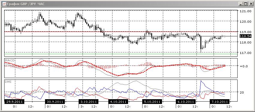 На дневном графике рост пока слабо себя проявляет - линия MACD немного развернулась вверх, но ADX по-прежнему указывает на нисходящее движение. Возможно, что уровень поддержки снова выступит 116,83 ближайшей целью.