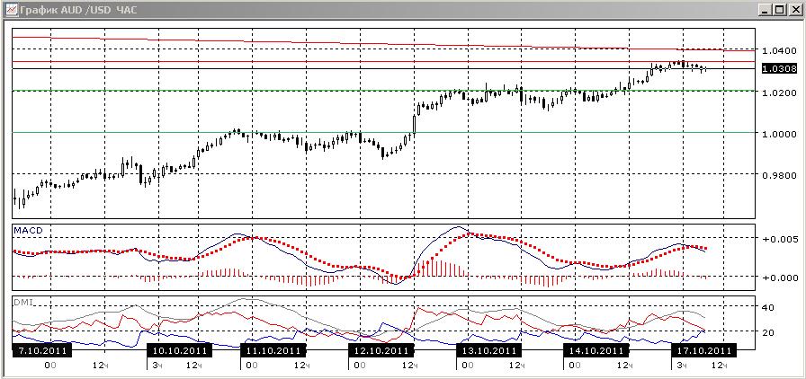 На дневном графике она растёт слишком энергично, чтобы предполагать его скоро прекращение, тем не менее, и роста без коррекции не бывает. Возможная причина коррекции — близкий уровень нисходящего тренда и сильное сопротивление в зоне около 1,0500. По индикаторам направленного движения рост должен продолжиться: растет (но скорость роста замедляется) гистограмма MACD, увеличивается положительный наклон линии MACD, по ADX пара тоже растёт.