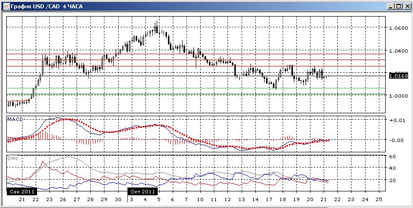 На четырехчасовом и часовом графике наблюдается флэт с околонулевым уровнем гистограммы MACD и приближающейся к горизонтали линией MACD. По ADX в этим масштабах тенденции тоже нет.