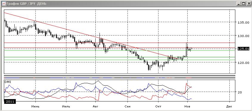 Пара находится в узком канале. Пока никакого тренда не видно. Пара ограничена линиями сопротивления 125,40 и поддержки 124,35. На данный момент пара движется к нижней границе канала.