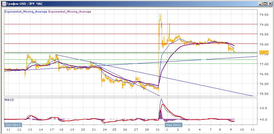 ситуация с парой пока что не сильно изменилась. Ей вчера удалось преодолеть поддержку на 78.00 и закрепиться под ней. Сегодняшние торги также проходят с небольшим снижением, приближаясь к поддержке на 77.50. Средние скользящие ЕМА21 и ЕМА55 пересеклись вниз, индикаторы MACD и RSI с понедельника находятся под своими центральными линиями и сегодня продолжают снижение. Цели вверх на сегодня — 78.00, 78.50, 79.00. Цели вниз — 77,50, 77.00