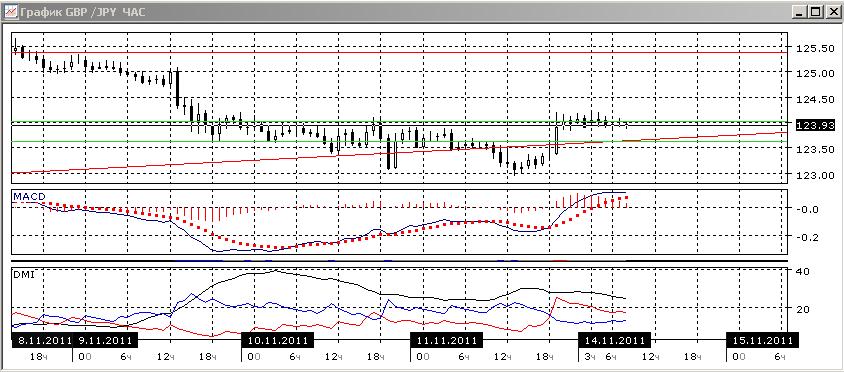 На часовом графике в течении этого дня уровень пары почти не меняется. Явных предпочтений по направлению дальнейшего движения скорее нет: образование многих свечей «дожи» показывает, что с направлением движения пара пока не определилась.