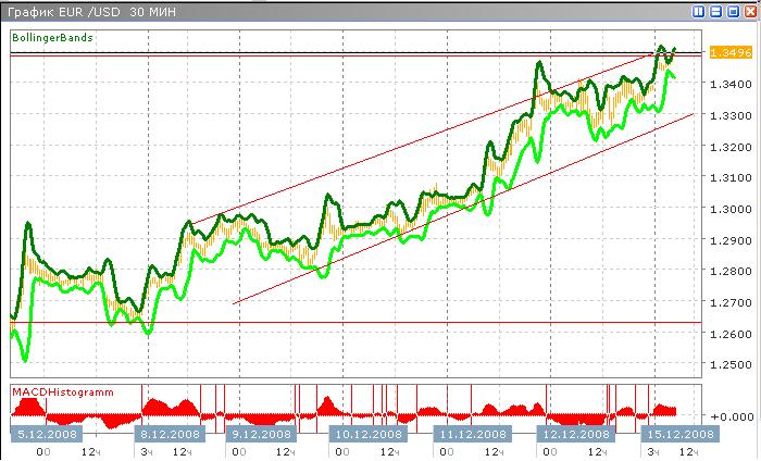 Похоже, начался долгожданный спад доллара. С 9 декабря пара показывает уверенный рост и на данный момент достигла многонедельного максимума 1.3472. Судя по всему, это далеко не предел и объективных причин для прекращения роста пока нет. Так что можно надеяться на спокойный восходящий тренд на протяжении всего сегодняшнего дня, а может и нескольких следующих. Если так пойдет и дальше, к вечеру евро вырастет против доллара на 100-150 пунктов.