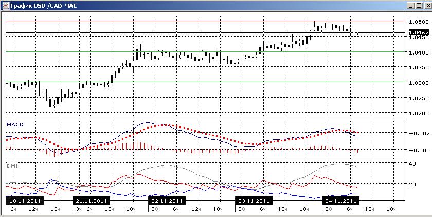 На четырехчасовом и часовом графиках образовались медвежьи расхождения максимумов гистограммы MACD и максимумов пары, что предполагает возможность снижения. Разворот к нему уже происходит на часовом графике, где снижается как гистограмма MACD, отрицательный наклон получила линия MACD, а DM+ и DM- сближаются. В случае развития коррекции целью видится уровень 1,0400.