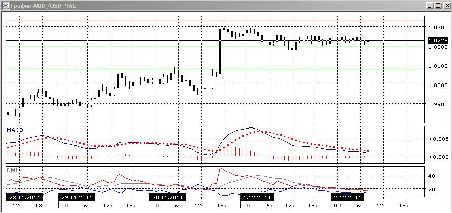 На дневном графике уровень паритета с легкостью преодолен. Пара развернулась к росту: растет гистограмма MACD, развернулась вверх линия MACD, DM+ выше DM-. Предположение того, что откат будет, строится на сохранении уже третий день уровня пары около уровня 1,0200. Таким образом, возможно формирование локальной вершины. Однако это будет ход против тенденции. На четырехчасовом графике рост видится предпочтительным, однако вновь наблюдается медвежье расхождение между максимумами пары и гистограммы MACD. Линия MACD развернулась к горизонтали, а гистограмма MACD снижается. Поэтому возможно снижение с ориентировочной целью 1,0080. На часовом графике пара пока остановилась. и это расхождение тоже видно, более того — пара за последние часы заметно снизилась.