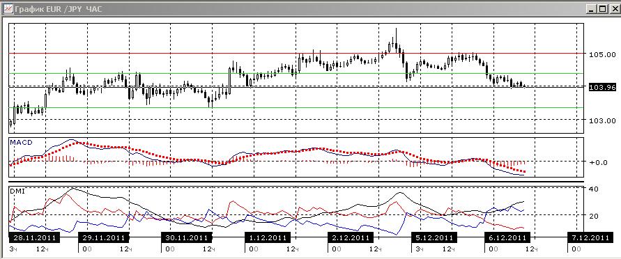 На четырехчасовом графике такой разворот уже произошел. Линия MACD развернулась вниз, гистограмма MACD тоже снижается. Линия DM- пересекла вверх DM+, что говорит о нисходящей тенденции.