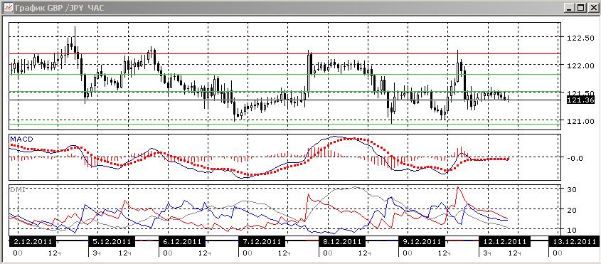 На дневном графике, как и на четырехчасовом с часовым, пара продолжает находиться в узком диапазоне. Индикаторы направленного движения характерны для флэта: линия MACD в этих масштабах горизонтальна, гистограмма MACD около нуля.
