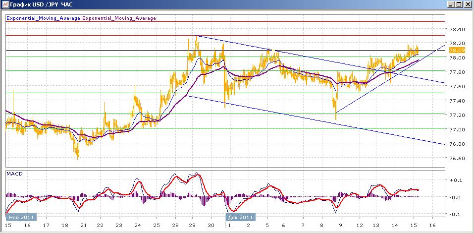 пара продолжает расти и снижаться, двигаясь в коридоре. Сейчас пара растет, за вторник и среду пара смогла перебраться выше уровня 78.00 и пока что закрепилась выше него, но неуверенно. Сейчас пара приближается к уровню 78.30 — двухнедельному сопротивлению. Средние скользящие ЕМА21 и ЕМА55продолжают расти. Индикаторы MACD и RSI с понедельника находятся выше своих центральных линий и сегодня замедляются Цели вверх на сегодня — 78.30, 78.50 Цели вниз — 78.00, 77.80, 77.50