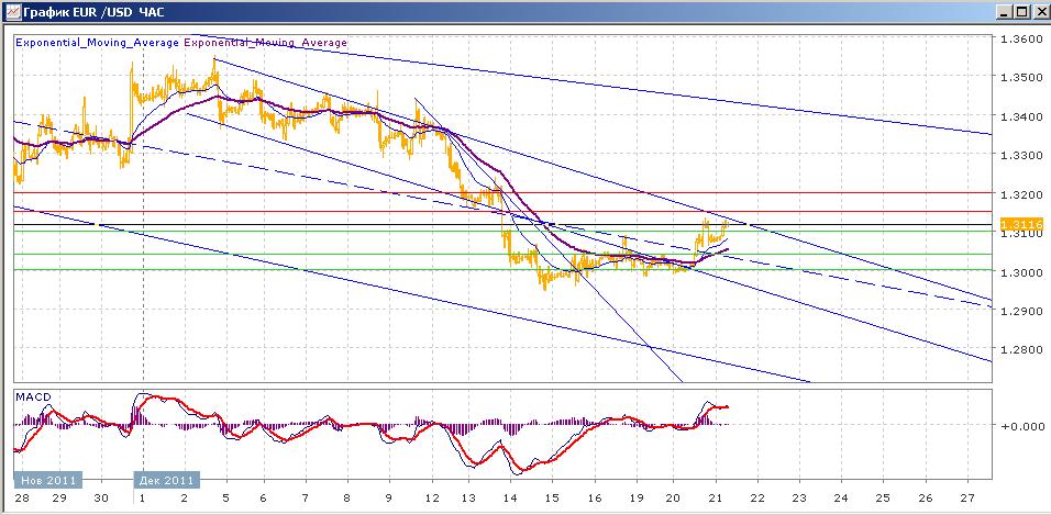 слабый рост пары продолжается. В понедельник пара двигалась достаточно ровно, ее попытки роста сдерживались нисходящей ЕМА55, и в целом , понедельник и первая половина вторника прошли под знаком тестирования вниз уровня 1.3000. но затем пара пошла вверх, показав сессионный максимум выше 1.3100 и закрывшись чуть ниже него. Сегодня пара немного растет и пока что торгуется выше 1.3100. Средние скользящие ЕМА21 и ЕМА55 пересеклись вверх и растут, индикаторы MACD и RSI вчера вышли выше своих центральных линий и сегодня слабо растут. На сегодня цели вверх — 1.3150, 1.3200 Цели вниз на сегодня — 1.3100, 1.3050