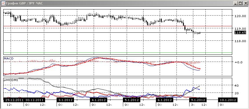 На часовом графике пара получила поддержку, что привело к образованию большой нижней тени в свечи в начале дня. Хотя это не привело к росту, но и снижения также нет. В случае роста целью может представляться уровень 119,20.